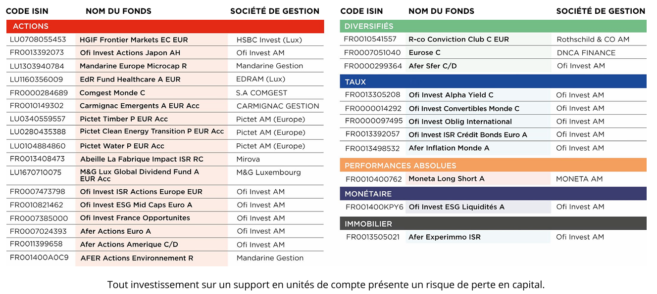 - Le support « AFER Economie Réelle » investissant dans des actifs non cotés conformément à la Loi Industrie Verte.